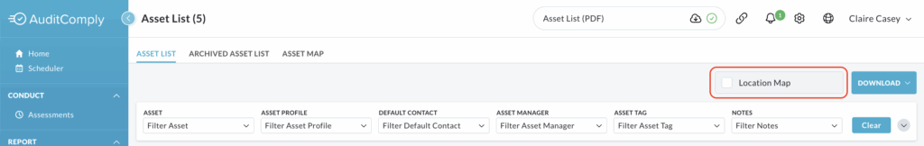 The Asset List page allows you to integrate a visual Location Map directly into your view, providing a geographic overview of your asset distribution.