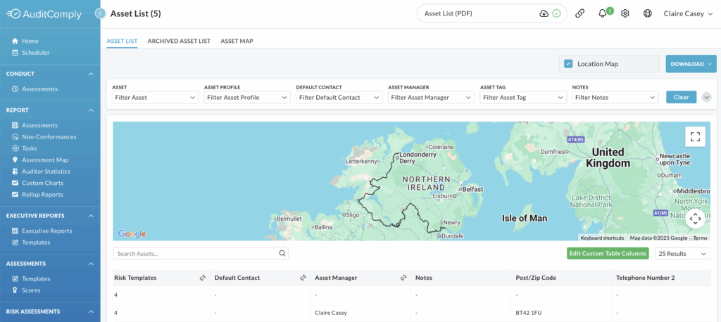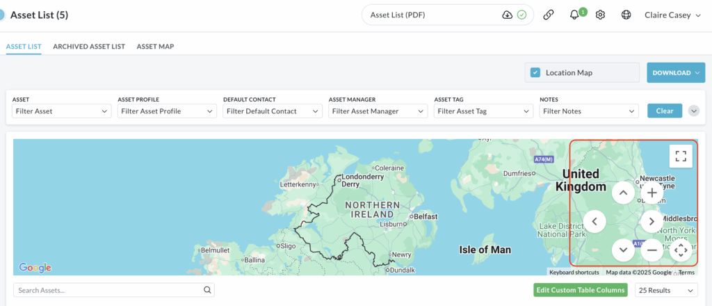 Once enabled, the map will appear above the Asset List table but below the filter options.