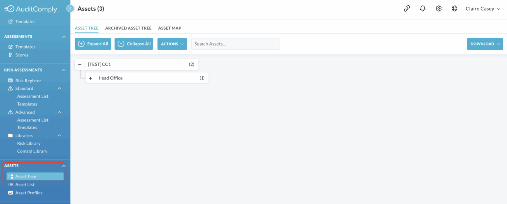 The Asset Tree is the hierarchical structure that displays all assets registered with your organisation.