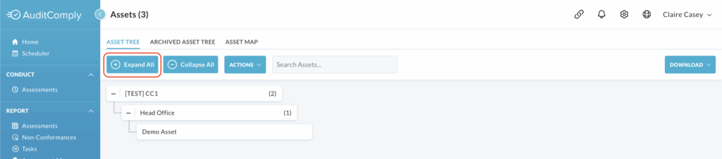 Clicking Expand All will fully open the tree, displaying all parent assets and every corresponding child asset beneath them.