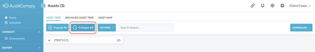 Clicking Collapse All will condense the tree view, hiding all child assets so that only the top level (parent) assets are visible.