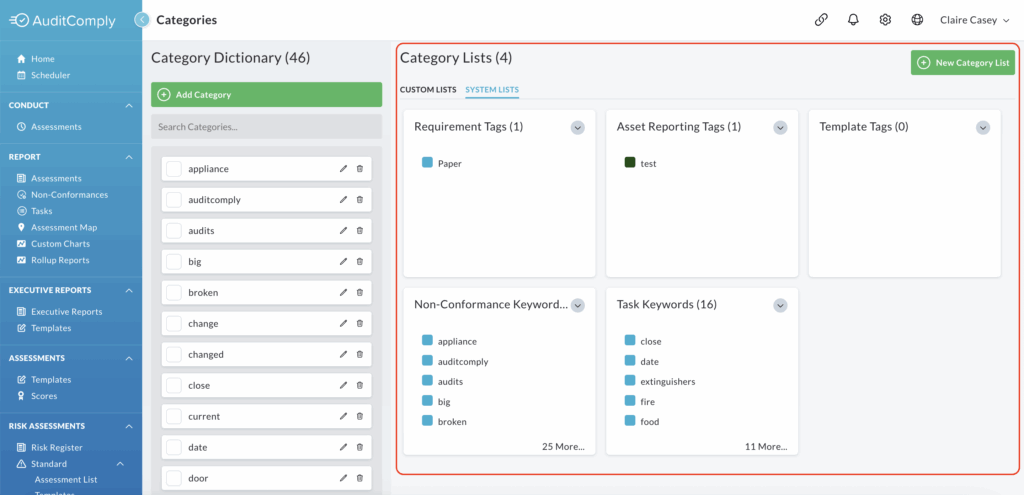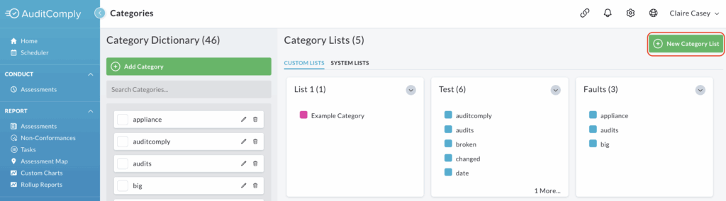 Important Note: Category Lists cannot be removed from the system once they are created, but they can be amended.